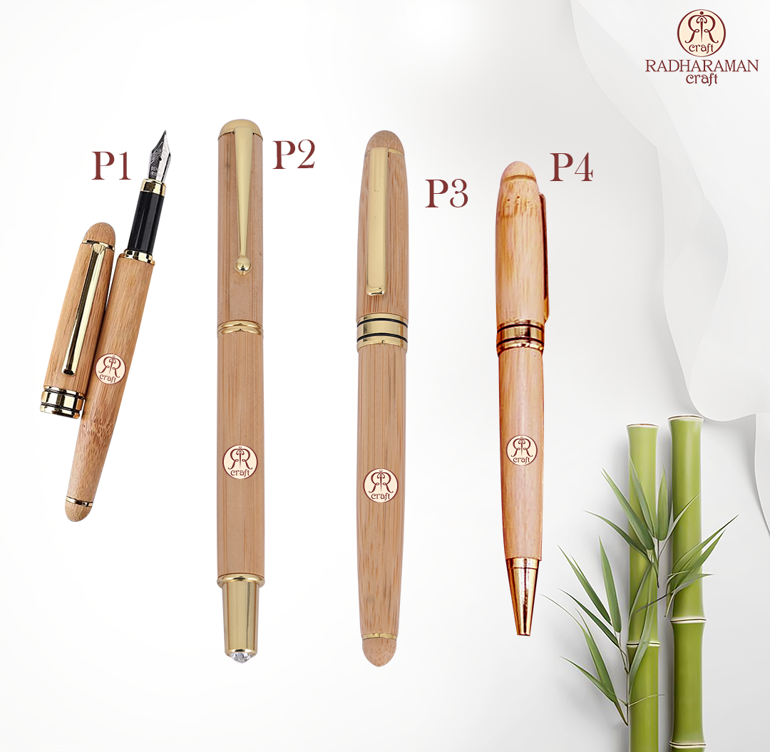 - P3- Crafted Premium Bamboo Roller Ball Pen with Metal Refill.