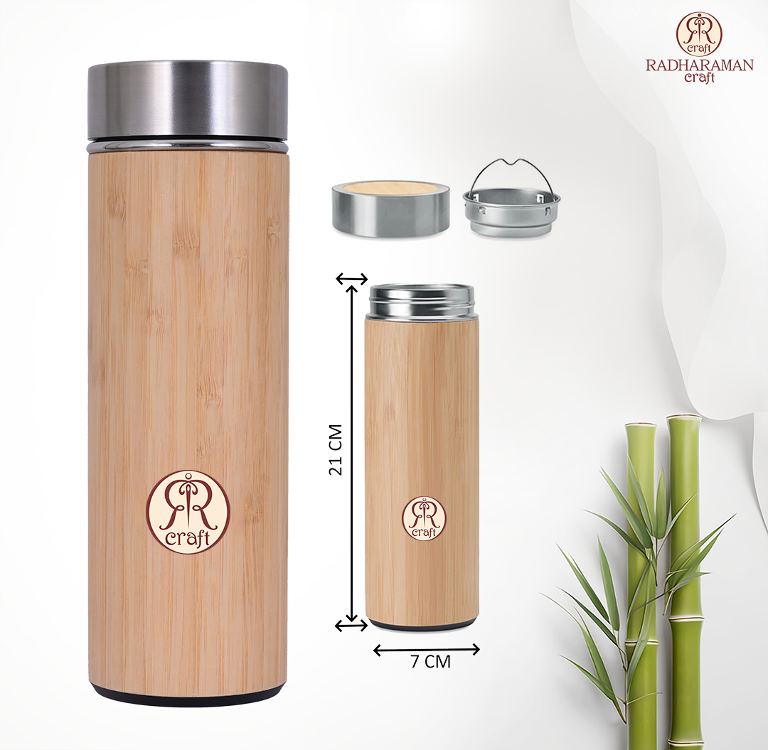 - Premium Bamboo insulated Steel (SUS 304) water bottle/flask. (450 ML)